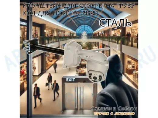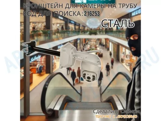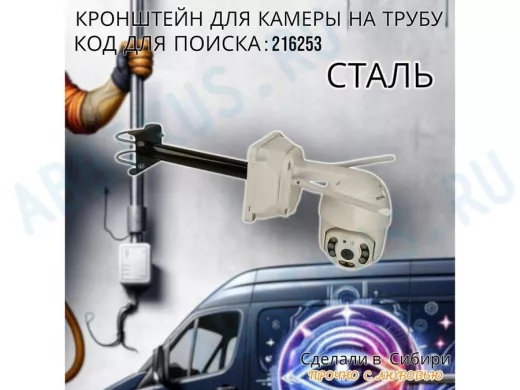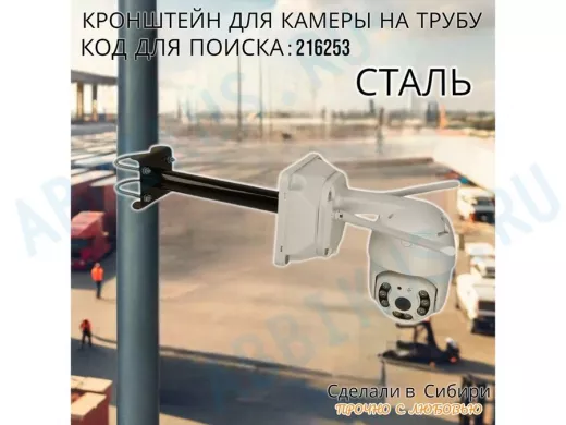 Заказать звонокКронштейн для видеокамеры на трубу 15...51мм вылет 25см под гермо-коробку "HIWOLL-216253" чёрный