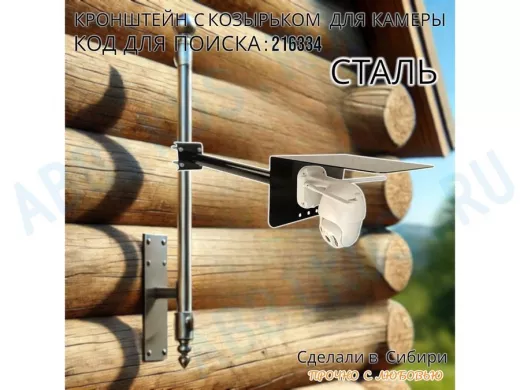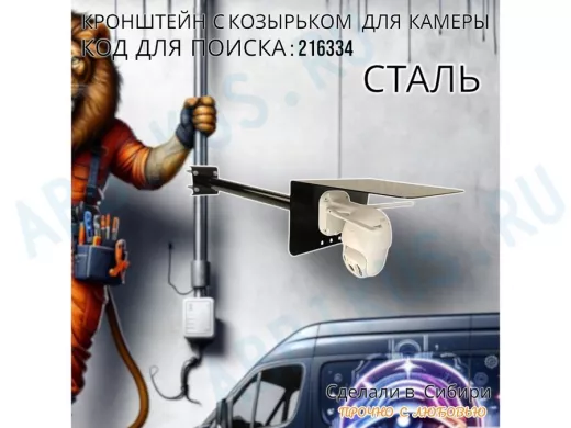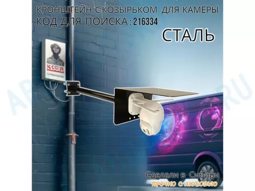Заказать звонокКронштейн с козырьком для видеокамеры на трубу 15...51мм вылет 50см 24х22см "HIWOLL-216334" чёрный