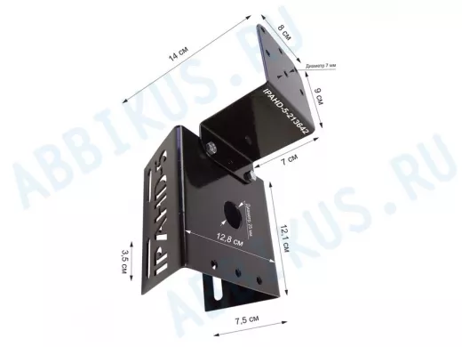- С данным кронштейном нет необходимости в фиксации дополнительного крепежа под установку камеры и прожектора, все крепежные отверстия имеются на кронштейне. Три отверстия вверху диаметром 7мм и шагом 30мм и три внизу позволяют закрепить опции: водо-снего-солнце защитный козырёк (код товара: 90396) или светодиодный прожектор.