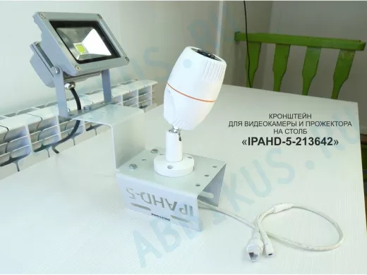 - Кронштейн позволяет быстро зафиксировать камеру и прожектор на столбе, не сверля его.