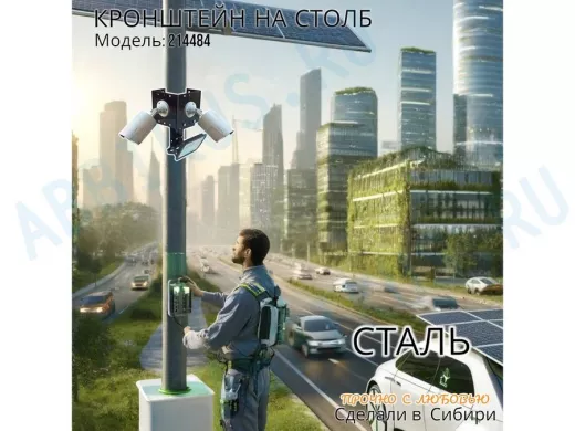 - Кронштейн позволяет быстро зафиксировать камеры видеонаблюдения или прожектор на столбе, не сверля его.