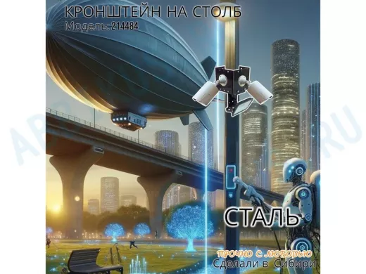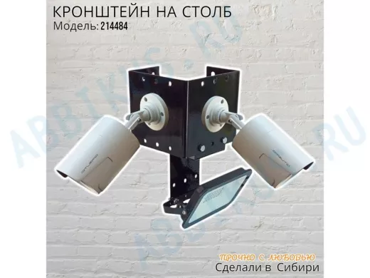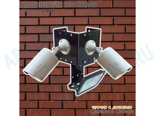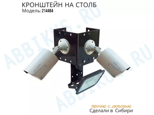 - Кронштейн для двух камер и прожектора, крепится при помощи СИП ленты монтажной на квадратный или круглый столб.