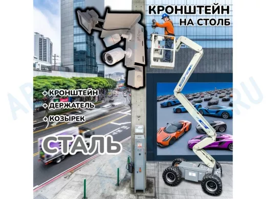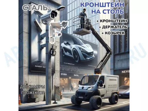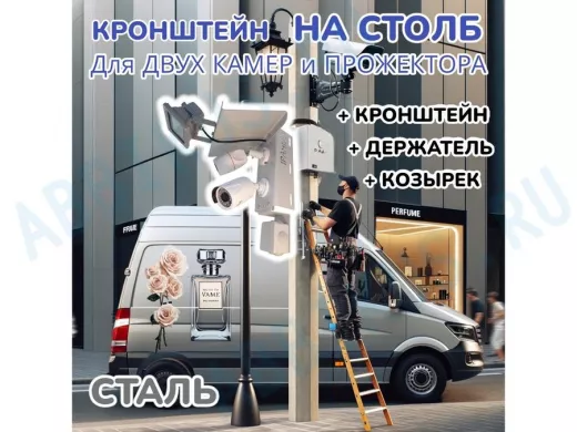 Заказать звонокКронштейн для двух камер и прожектора на столб с козырьком и пластиной серый "IPAHD-5-214548"