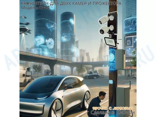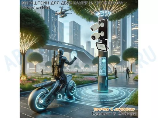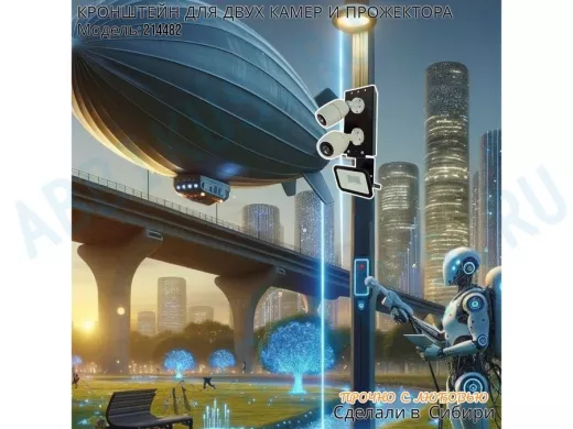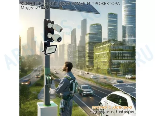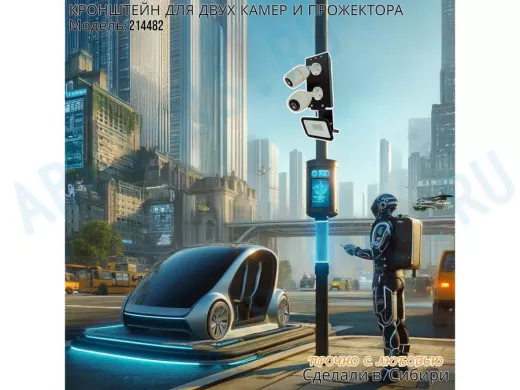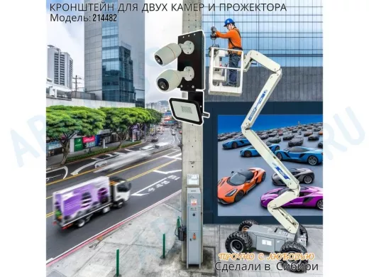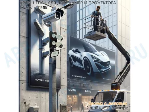 Заказать звонокКронштейн для двух камер на столб с пластиной под прожектор "IPAHD-5-214482" прочная сталь, черный