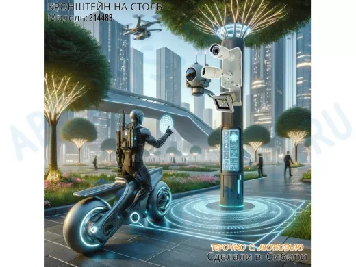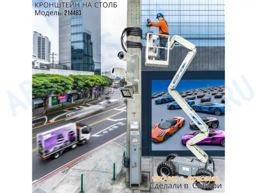 - Кронштейн крепится при помощи монтажной СИП ленты на квадратный железобетонный или круглый столб.