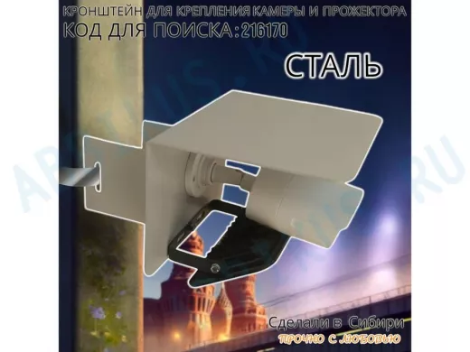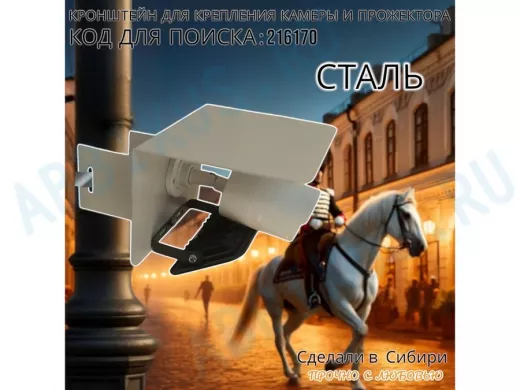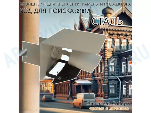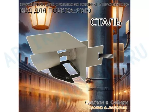 Заказать звонокКронштейн для камеры и прожектора на столб с козырьком "IPAHD-216170" серый, под СИП-ленту или хомут