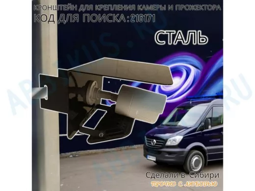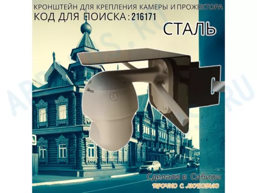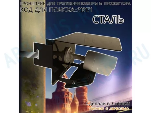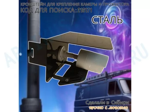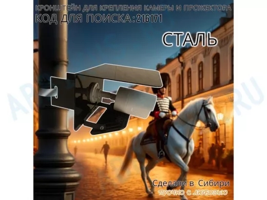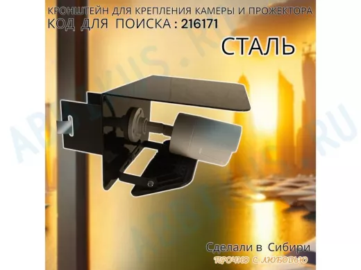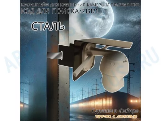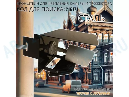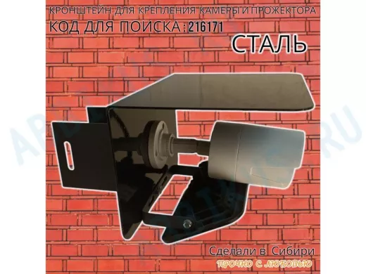 Заказать звонокКронштейн для камеры и прожектора на столб с козырьком "IPAHD-216171" черный,под СИП-ленту или хомут
