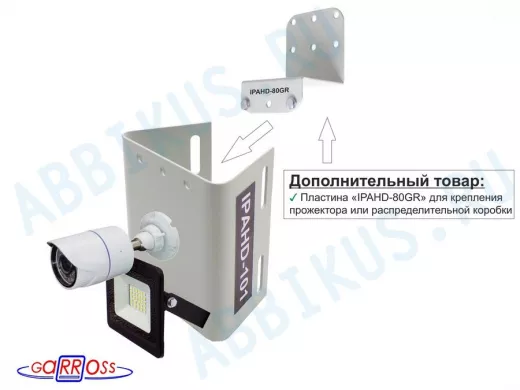 - Кронштейн "IPAHD-STOLB-101S" для 1 камеры и прожектора, крепится при помощи СИП ленты монтажной на квадратный или круглый столб. Подходит для любых камер: HickVision, HiWatch, Dahua, RVI, Орбита и др.