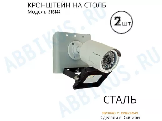 - Кронштейн для 1 камеры и прожектора, крепится при помощи СИП ленты монтажной на квадратный или круглый столб. Подходит для любых камер.