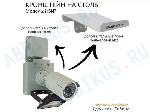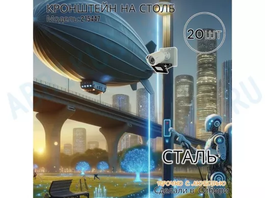 Заказать звонокНабор из 20 шт. Кронштейн для 1 камеры и прожектора на столб серый "IPAHD-101GR" под хомут