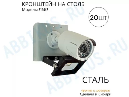 - Кронштейн для 1 камеры и прожектора, крепится при помощи СИП ленты монтажной на квадратный или круглый столб. Подходит для любых камер.
