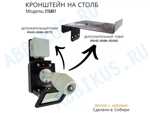 - Кронштейн для 1 камеры и прожектора, крепится при помощи СИП ленты монтажной на квадратный или круглый столб. Подходит для любых камер.