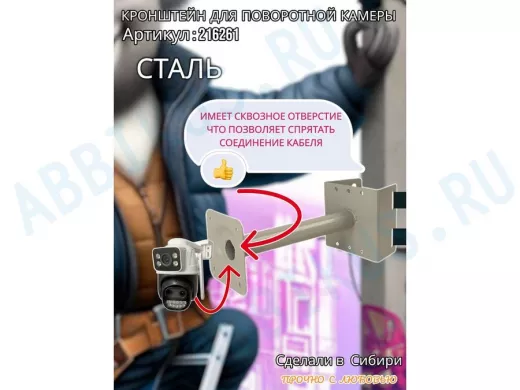 - Стальной кронштейн позволяет вынести камеру от столба на 25 см.