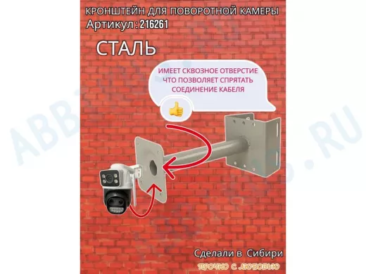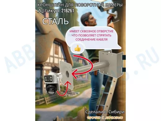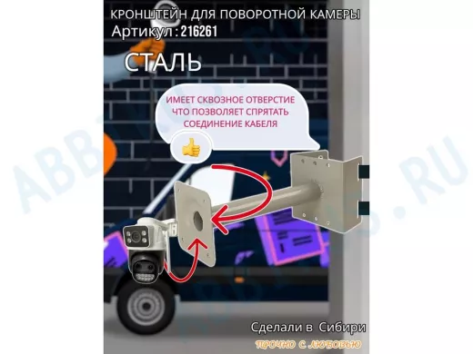 - Кронштейн для крепления видеокамеры на столб имеет сквозное отверстие, что позволяет спрятать соединения кабеля, тем самым защищает их от внешних воздействий (дождь, снег, ветер) поэтому нет необходимости использовать дополнительный гермобокс, т.к. разъемы спрячутся в трубе.