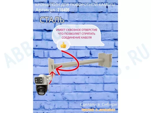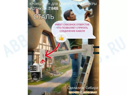 - Кронштейн для крепления видеокамеры на столб имеет сквозное отверстие, что позволяет спрятать соединения кабеля, тем самым защищает их от внешних воздействий (дождь, снег, ветер) поэтому нет необходимости использовать дополнительный гермобокс, т.к. разъемы спрячутся в трубе.