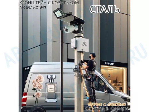 Заказать звонокКронштейн для камеры и прожектора на столб с козырьком вверх черный "IPAHD-5-215619"