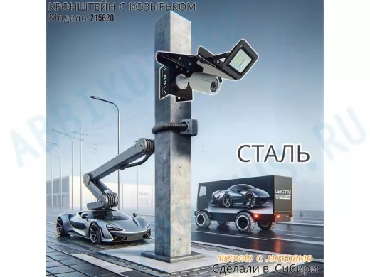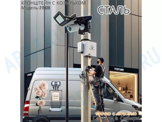Заказать звонокКронштейн для камеры и прожектора на столб с козырьком и желобком черный "IPAHD-5-215620"
