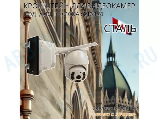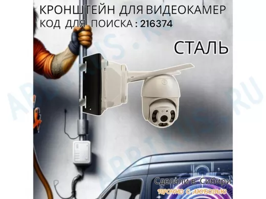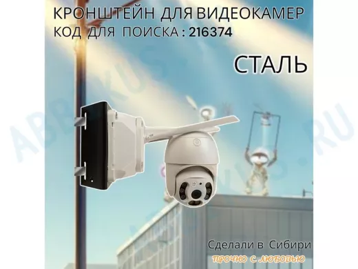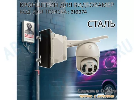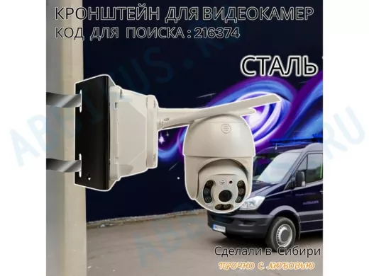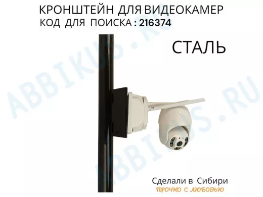- Универсальный усиленный кронштейн предназначен для крепления поворотных видеокамер на трубе диаметром от 50мм и более.