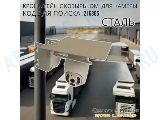 Стальное крепление для поворотной камеры на столб с защитным козырьком "IPAHD-216365" серый