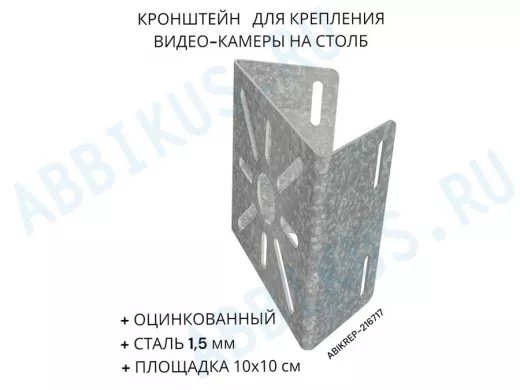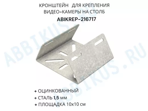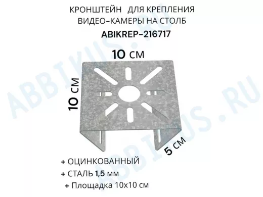 Заказать звонокКронштейн оцинкованный для камеры на столб "ABIKREP-216717" 100х104мм, сталь, под хомуты, вылет 5см