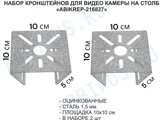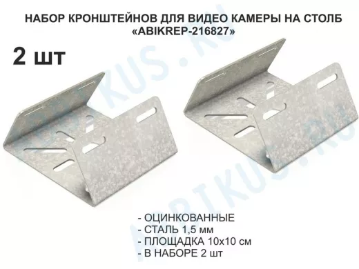 Заказать звонокНабор 2 шт. Кронштейн оцинкованный для камеры на столб "ABIKREP-216827" 100х104мм, сталь,под хомуты