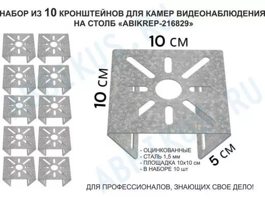 Набор из 10 кронштейнов "ABIKREP-216829". Предназначены для крепления поворотной видео-камеры или прожектора на столбе.