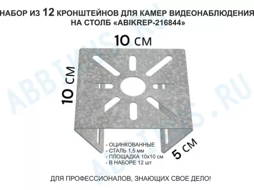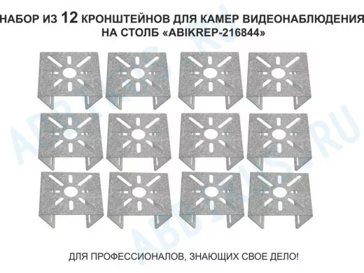 Заказать звонокНабор 12 шт. Кронштейн оцинкованный для камеры на столб "ABIKREP-216844" 100х104мм, сталь,под хомуты
