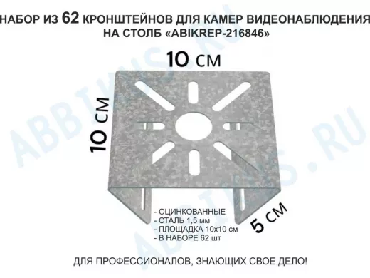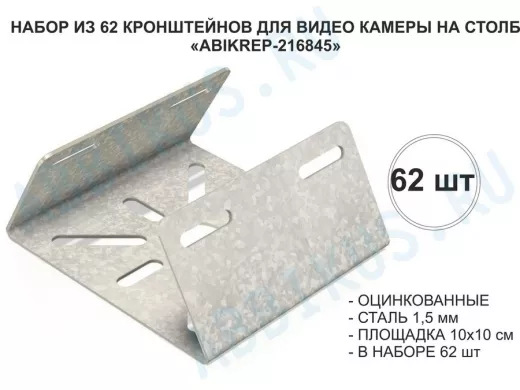 Заказать звонокНабор 62 шт. Кронштейн оцинкованный для камеры на столб "ABIKREP-216846" 100х104мм, сталь,под хомуты