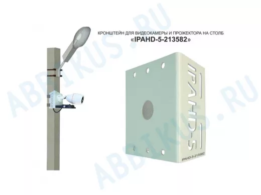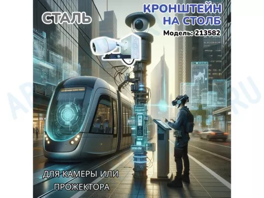 Заказать звонокКронштейн для камеры и прожектора на столб "IPAHD-5-213582" серый под СИП-ленту, хомут, вылет 75мм