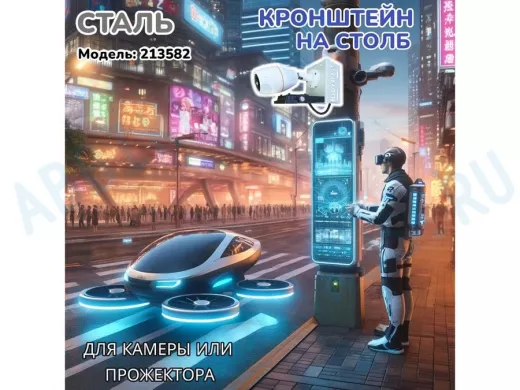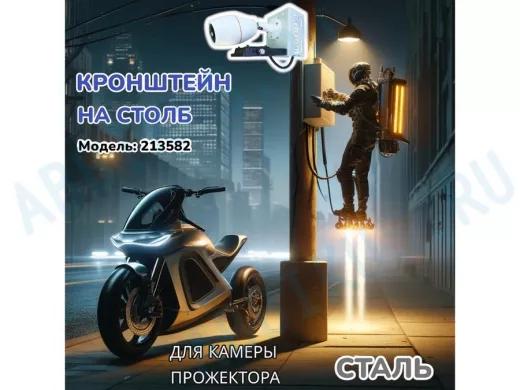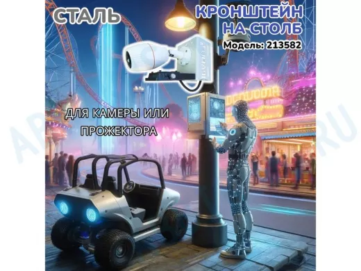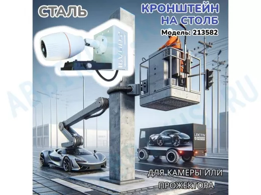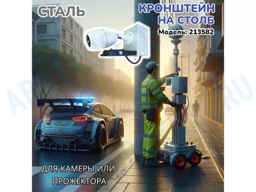 - Кронштейн для одной камеры и прожектора, крепится при помощи СИП ленты монтажной на квадратный или круглый столб. Подходит для любых камер: HickVision, HiWatch, Dahua, RVI, Орбита и др.