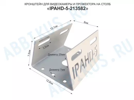 Кронштейн для камеры и прожектора на столб "IPAHD-5-213582" серый под СИП-ленту, хомут, вылет 75мм