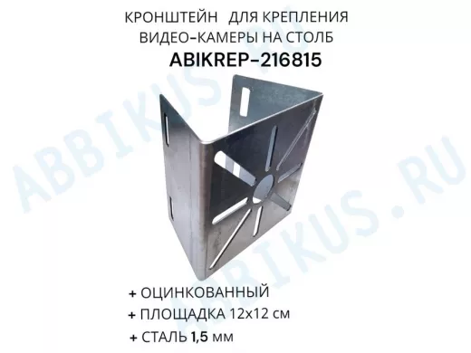 Заказать звонокКронштейн оцинкованный для камеры на столб "ABIKREP-216815" 120х120мм, под хомуты, вылет 7,5 см