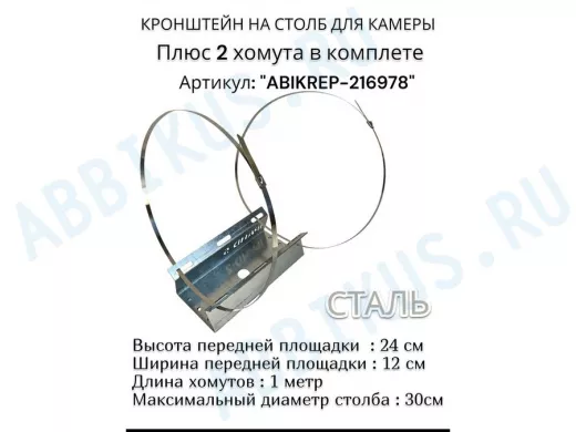 Заказать звонокКронштейн оцинкованный для камеры видеонаблюдения с двумя хомутами на столб "ABIKREP-216978" 24х12см