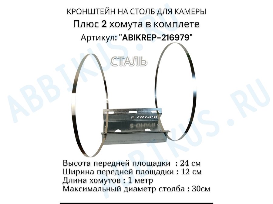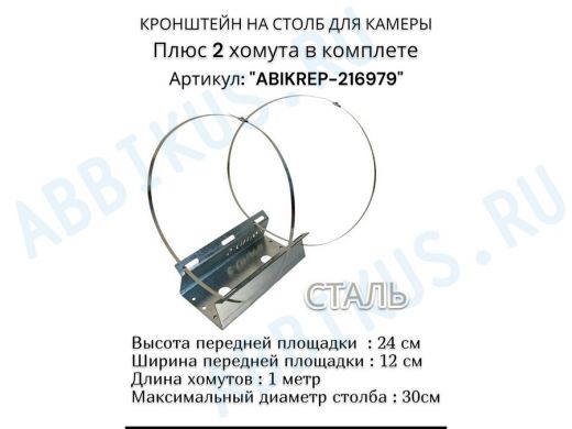 Заказать звонокКронштейн оцинкованный для камеры видеонаблюдения с хомутами на столб "ABIKREP-216979" 24х12см, 2отв