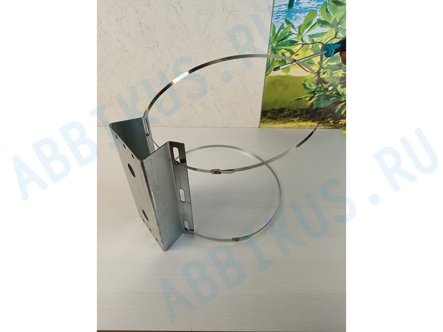 Кронштейн оцинкованный для камеры видеонаблюдения с хомутами на столб "ABIKREP-216979" 24х12см, 2отв