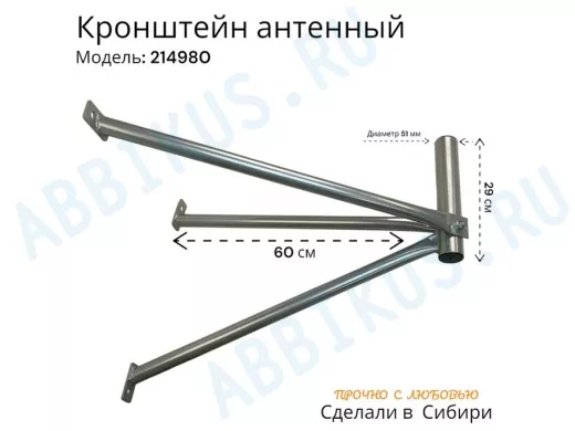 Заказать звонокКронштейн для спутниковых антенн, вылет 0,6 метра "SAT-600-214980" серый, разборный, диаметр 51мм