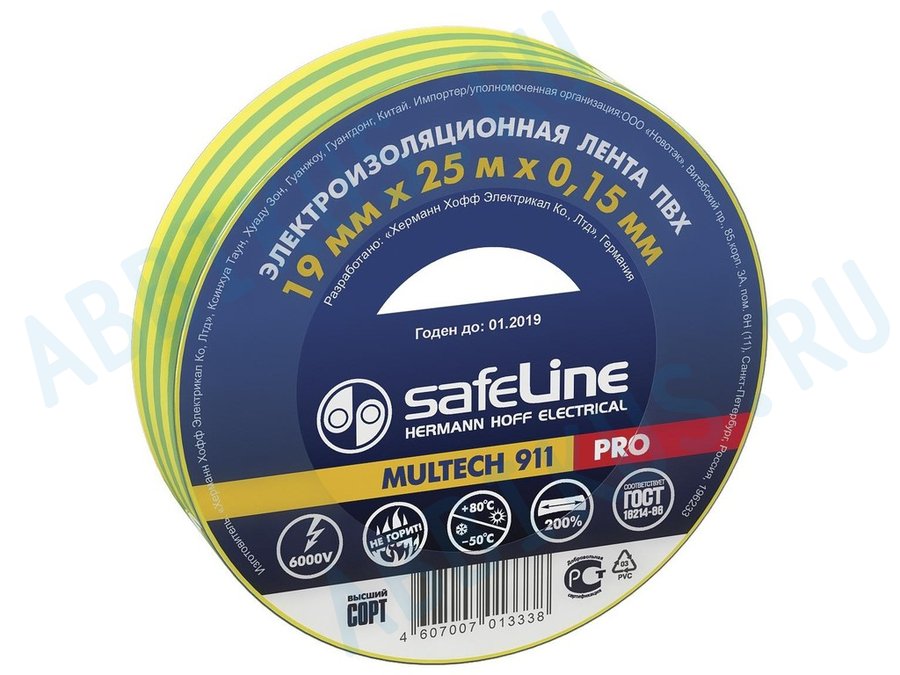 В корзину Купить в 1 клик Изолента 19мм х 25метров желто-зеленая Safeline