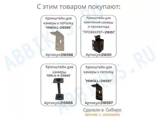Заказать звонокКронштейн для поворотной камеры к потолку усиленный "HIWOLL-216602" черный, сталь