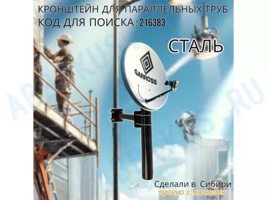 - Универсальный усиленный кронштейн для параллельных труб предназначен для крепления прожектора,антенн,видеокамер на трубе диаметром от 15 до 51мм.