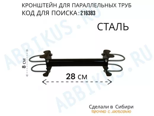 Заказать звонокКронштейн для параллельных труб диаметром от 15 до 51мм длина 25см "HIWOLL-216383" стальной, чёрный