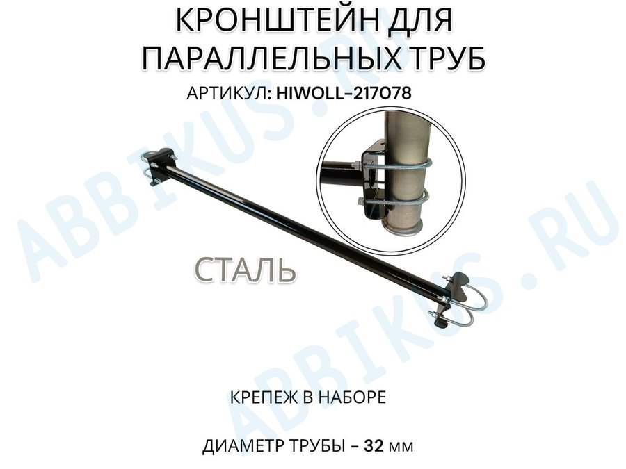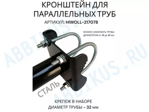 Заказать звонокКронштейн для параллельных труб диаметром от 15 до 51мм длина 75см "HIWOLL-217078" стальной, чёрный