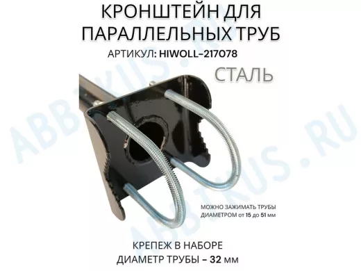 Кронштейн для параллельных труб диаметром от 15 до 51мм длина 75см "HIWOLL-217078" стальной, чёрный