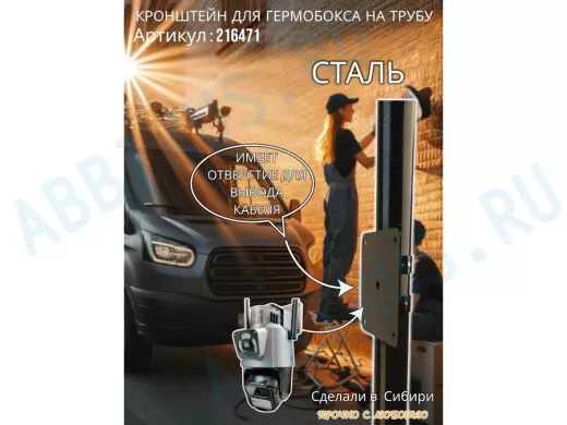 - Кронштейн позволяет быстро зафиксировать гермобокс с видеокамерой на трубу.