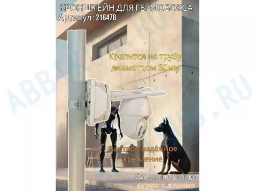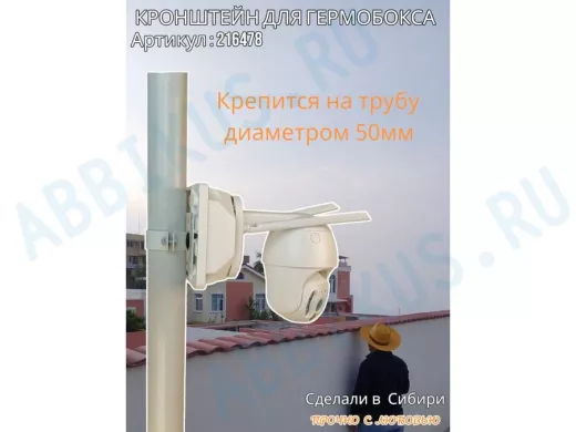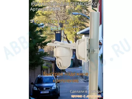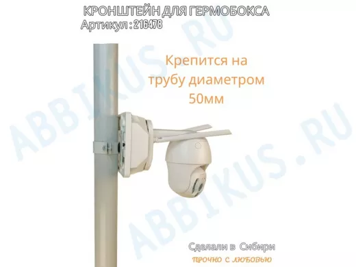 Кронштейн позволяет быстро зафиксировать гермобокс с видеокамерой на трубу.