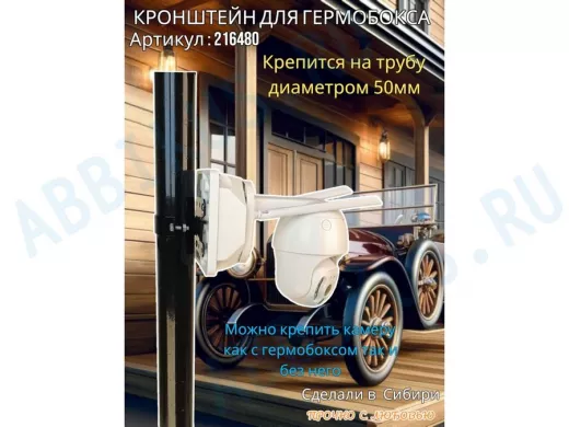 - Универсальный усиленный кронштейн предназначен для крепления гермобоксов,коробок с видеокамерой, дорожных знаков ,электрощитков на трубе диаметром 50мм.