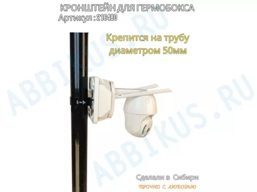 - Кронштейн позволяет быстро зафиксировать гермобокс с видеокамерой на трубу.