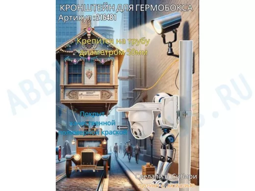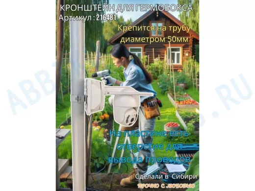 - Кронштейн позволяет быстро зафиксировать гермобокс с видеокамерой на трубу.