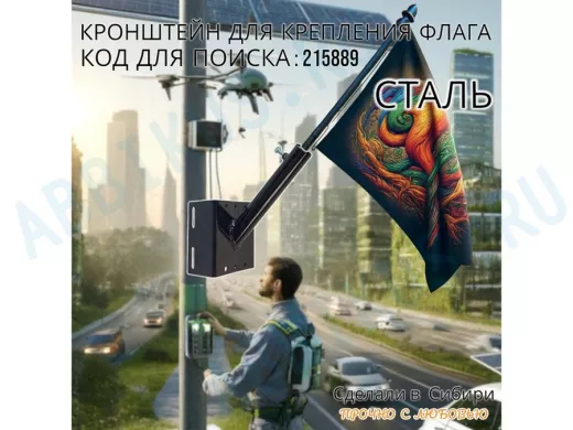Заказать звонокКронштейн для крепления флага на столб угол 45 градусов "ФЛАГОКРЕП-215889" вылет 21см, сталь,черный