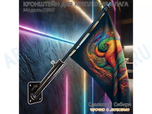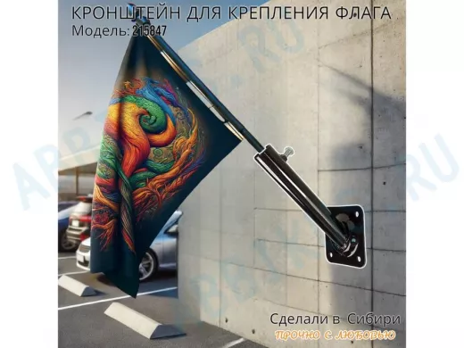 Заказать звонокКронштейн для крепления одного флага на стене угол 45 градусов "ФЛАГОКРЕП-215847" сталь, цвет черный