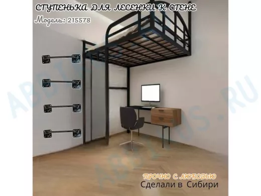 - Ступенька для лесенки имеет лаконичный и стильный дизайн, для крепления к стене